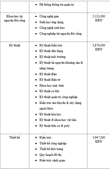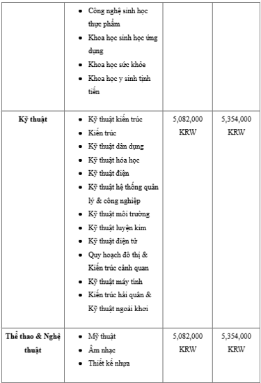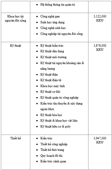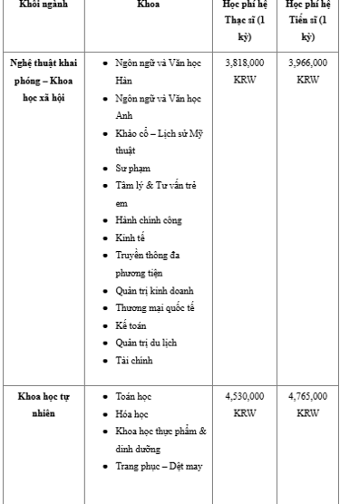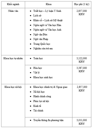 Phí đăng ký (Thạc sĩ): 50,000 KRW