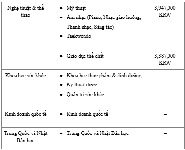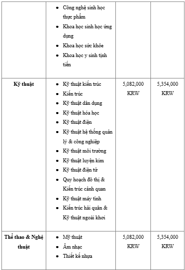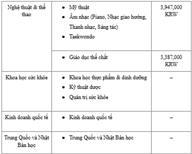 Chương trình đào tạo hệ đại học của Đại học Dong A Hàn Quốc bao gồm 11 khối ngành với phí nhập học là 791,000 KRW