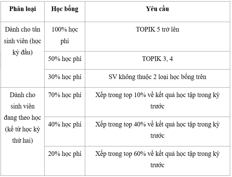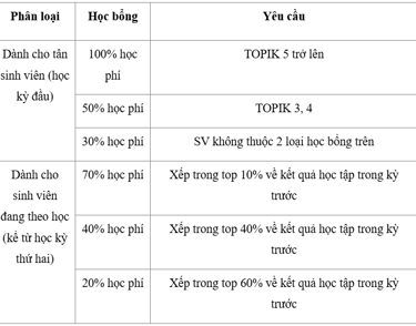 - Điều kiện tiếng Hàn: Không yêu cầu TOPIK tiếng Hàn