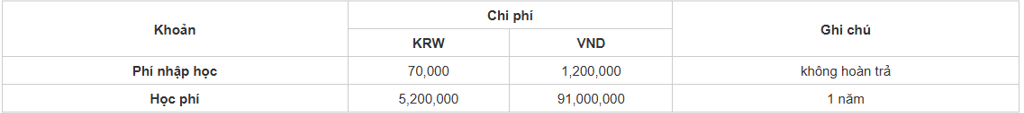 Học phí học tiếng Hàn: 5,200,000 KRW/ năm