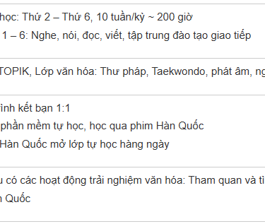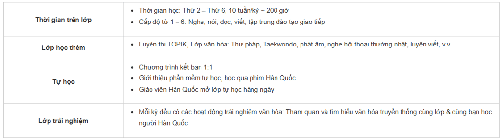 Học bổng tiền mặt: 500.000 KRW cho sinh viên đạt TOPIK 4 trở lên trong thời gian học.