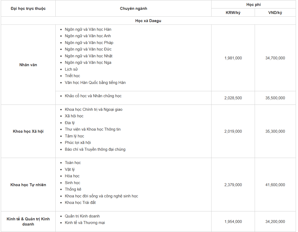 Daegu Main Campus: 80 Daehakro, Bukgu, Daegu, Hàn Quốc