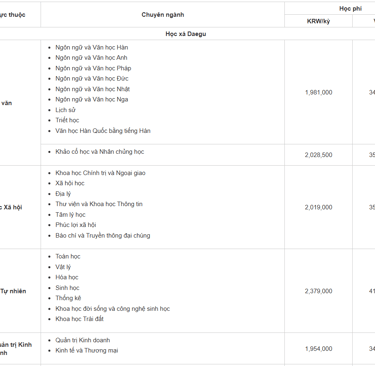 III. Chương trình đào tạo trường Đại học quốc gia Kyungpook Hàn Quốc