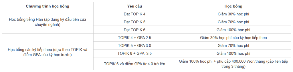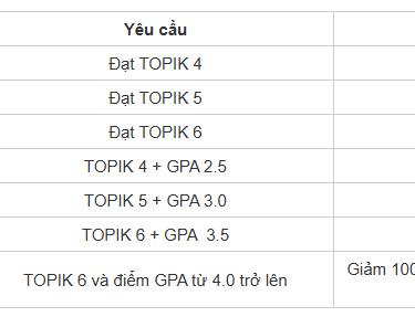 Hệ Sau đại học: Tốt nghiệp đại học với thành tích tốt, có TOPIK 3-5 tùy mỗi ngành học