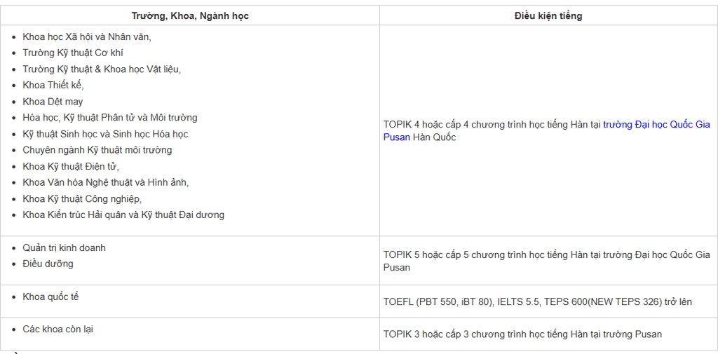II. Điều kiện nhập học Đại học Quốc gia Pusan Hàn Quốc