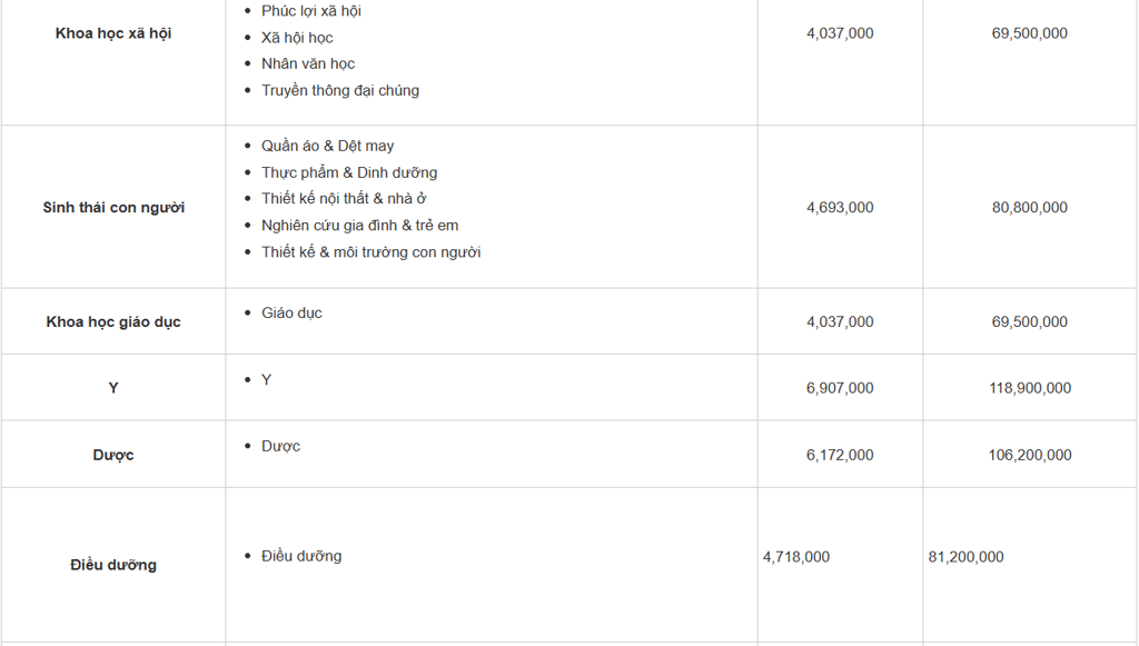 Đặc điểm: Phù hợp cho cả sinh viên nội địa và quốc tế, với quy mô lớn và đa dạng.