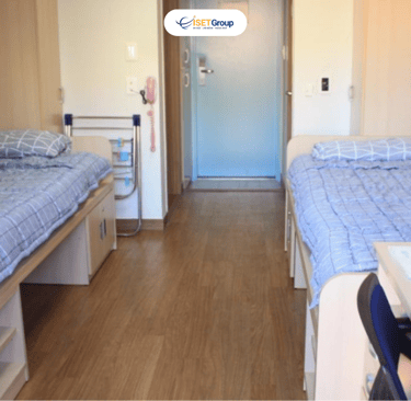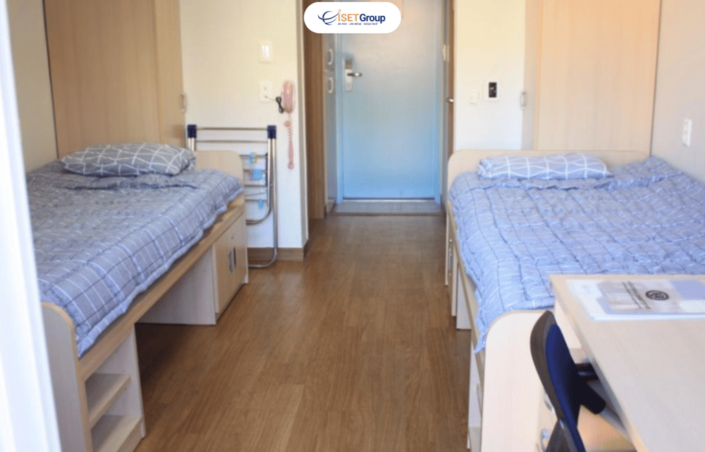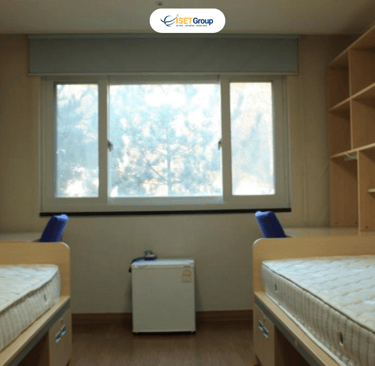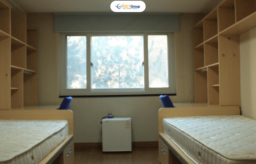 Phòng riêng: Giường, bàn học, tủ quần áo, tủ lạnh, điều hòa, hệ thống sưởi, internet tốc độ cao.
