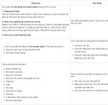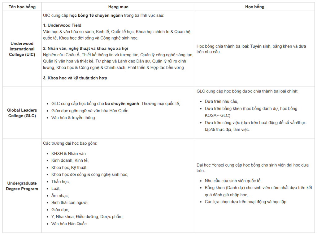 VI. Học bổng Đại học Yonsei Hàn Quốc