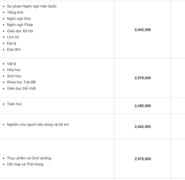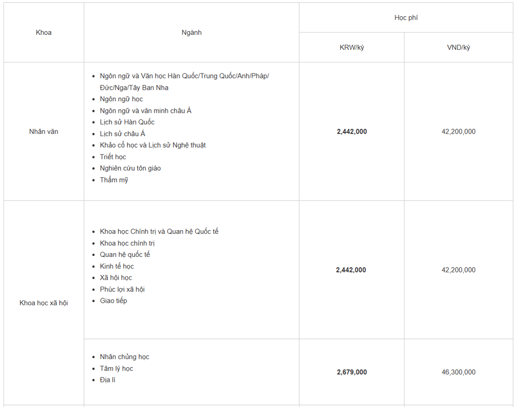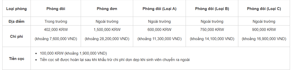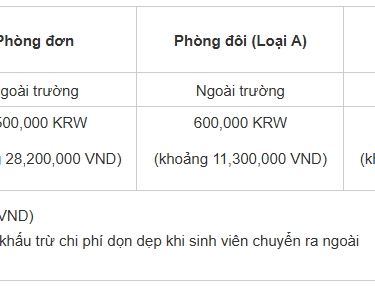 Ký túc xá: 850,000 – 1,000,000 KRW/ kỳ