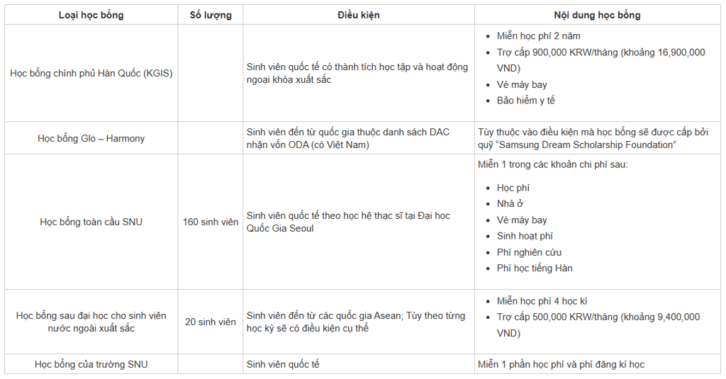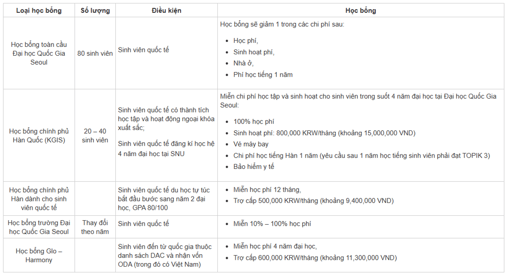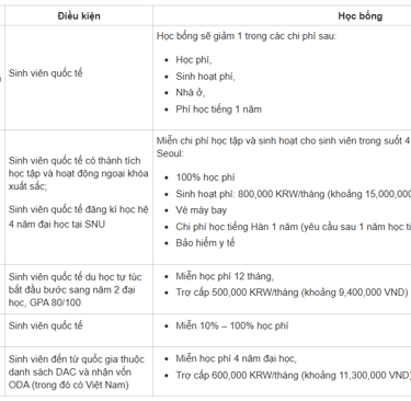 IV. Học bổng Đại học Quốc gia Seoul Hàn Quốc