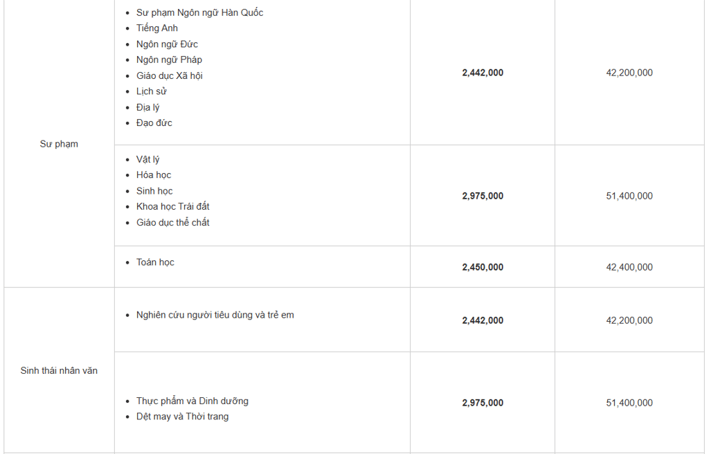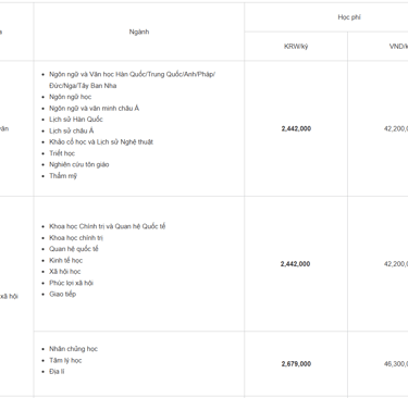 Học phí tiếng Hàn: 6,600,000 – 7,200,000 KRW/năm