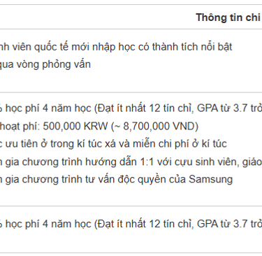 VI. Học bổng trường Đại học Sungkyungwan Hàn Quốc